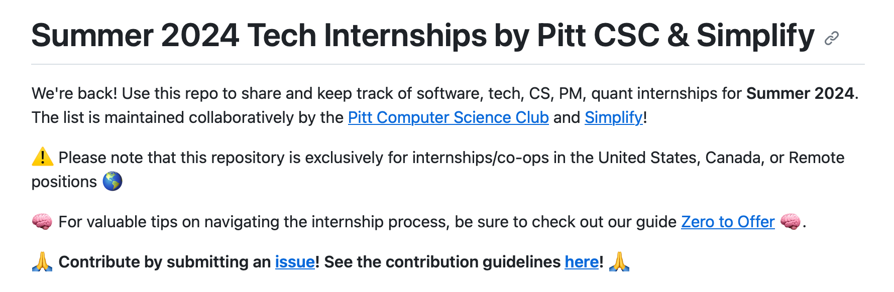 [Link: https://github.com/SimplifyJobs/Summer2024-Internships]